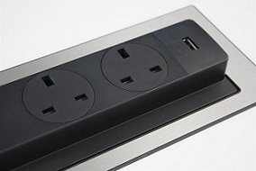 Compact and flush fitting, the new Sycamore EVOline Backflip provides access to discreet power connectivity where ever it may be needed. Installed into a worktop and/or above most drawers the EVOline Backflip turns effortlessly with the press of a finger to reveal 2 UK power sockets and a USB charging point.