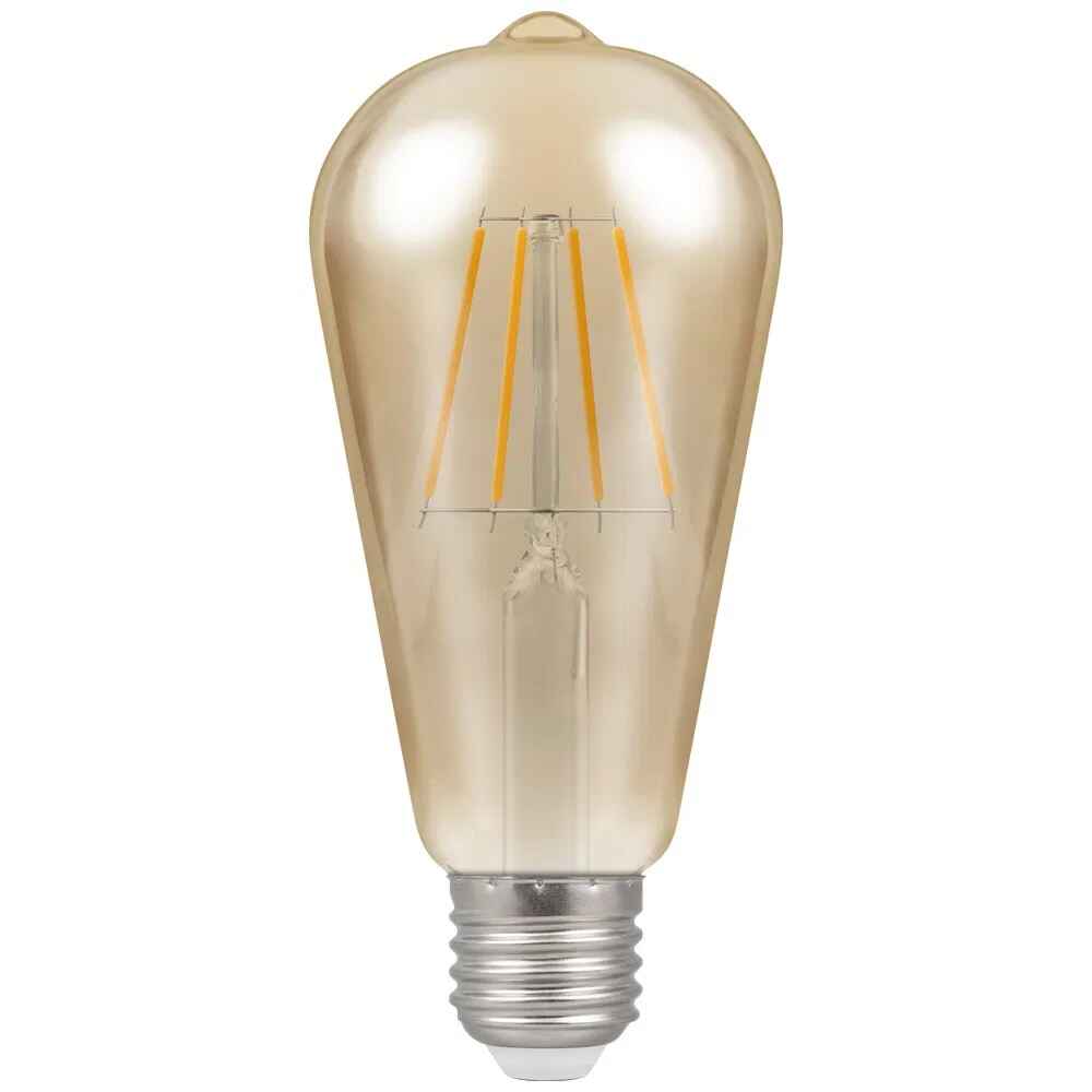 Dimmable LED filament ST64 squirrel cage lamp with antique-bronze finish. Energy saving LED extra warm white replacement lamp featuring LED filament technology.