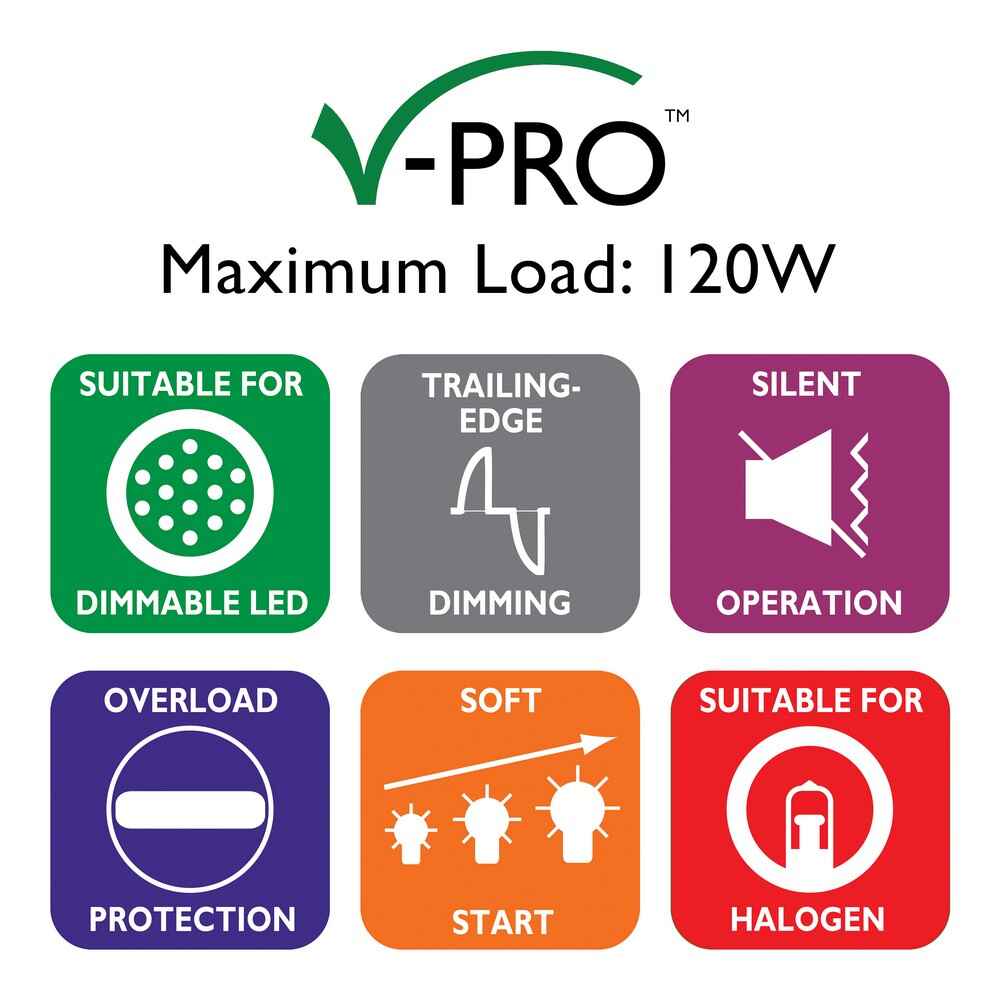 Features V-Pro intelligent dimming technology. Soft start feature and intelligent overload protection.